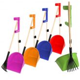 • Materiaal: handstuk, hark en schuif zijn van plastic, de steel van hout.